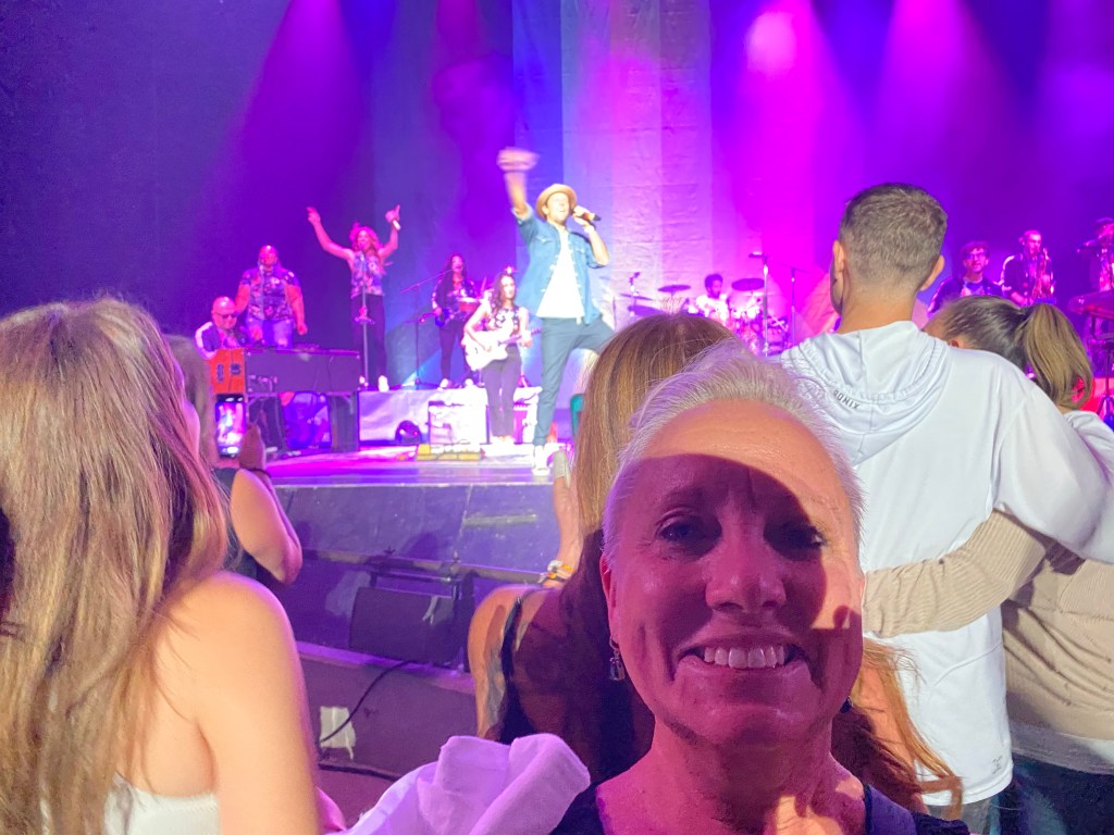 It was perfect weather and our seats were amazing, third row center. The opening band was Southern , a hip young black gal with two female back up singers, one who looked 12 and the other the drummer. She danced and belted out great songs including “Don’t Give Up” which the audience sang to. Such fun.