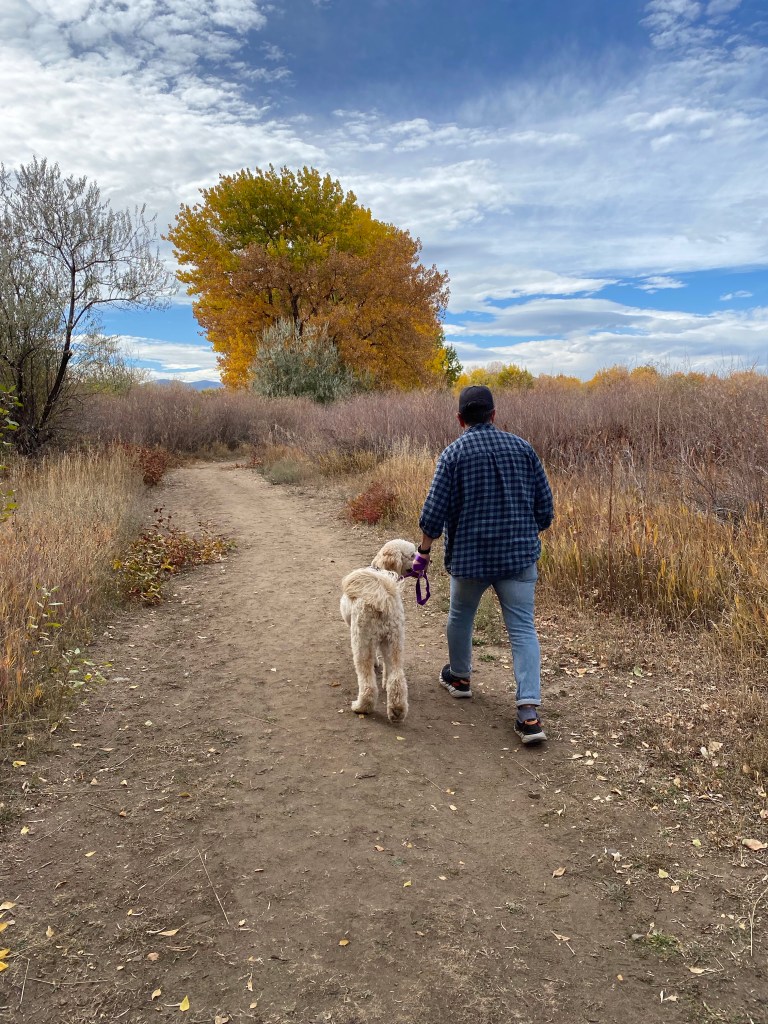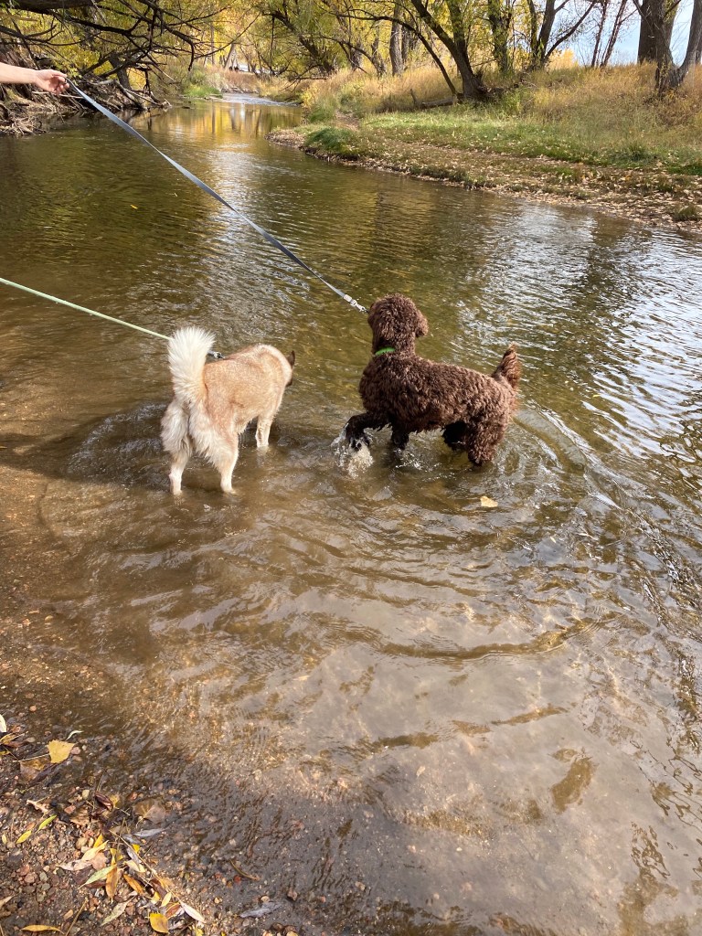We rested some then went on a walk with all three dogs to a beautiful nearby park, Bear Creek Park. The fall colors were amazing. We let the dogs play in the water. Of course, Wilson was dog reactive which is discouraging. I saw cute Prairie dogs and took some fun video and pics for Wilson’s tik tok.