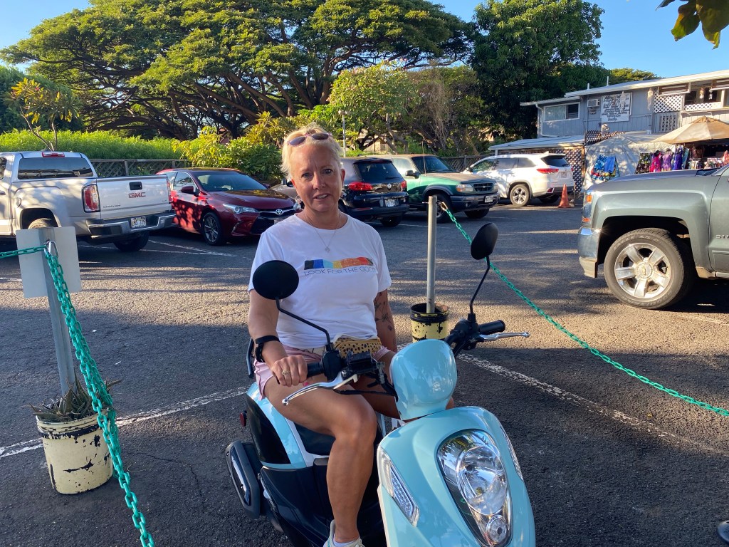 So wobbly moped newbie me, took off and rode four miles all by myself back to the moped shop. I was courageous around curves, in the wind, hitting bumps, having cars behind me with not enough space to let them pass. I did it.