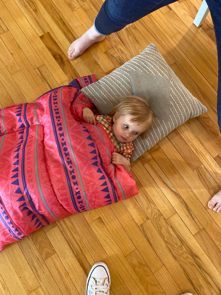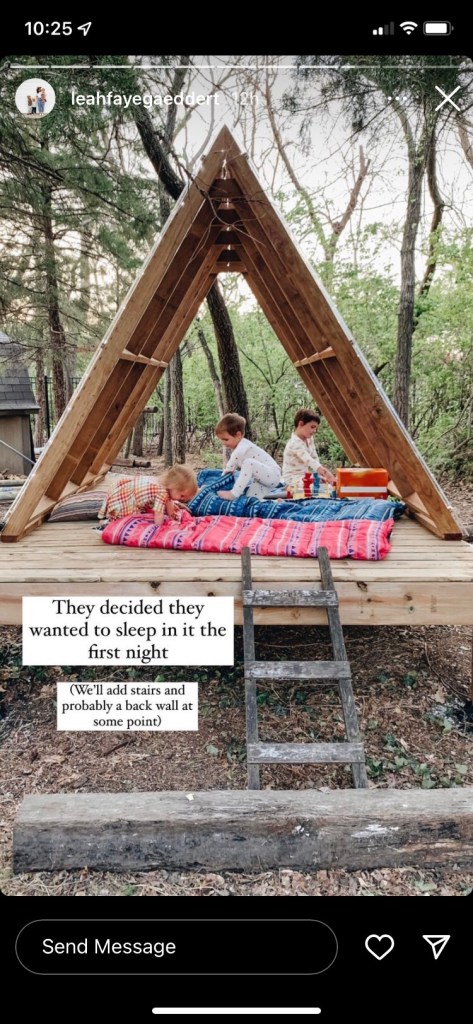 We all ate Chinese food while watching the boys move into the treehouse. The next morning Leah said that Henry had a nightmare at midnight and was sad to wake up inside. Dave and Emmet got cold in the morning and Dave came in as Emmet wanted to stay out there longer.