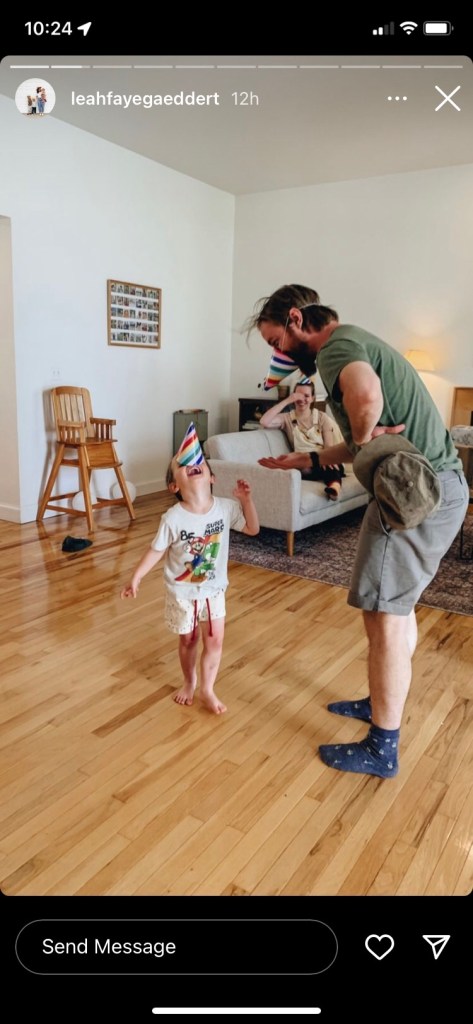 All of the Gaedderts arrived and we did cake and presents. The day had warmed so we got to spend time inside and outside and everyone seemed to truly enjoy each other’s company. The boys adore playing with the older cousins who helped them with legos and played soccer out back. They also found 4 tiny snakes and a frog. Emmet surprisingly held the snake with no fear. Eleanor was not afraid either.
