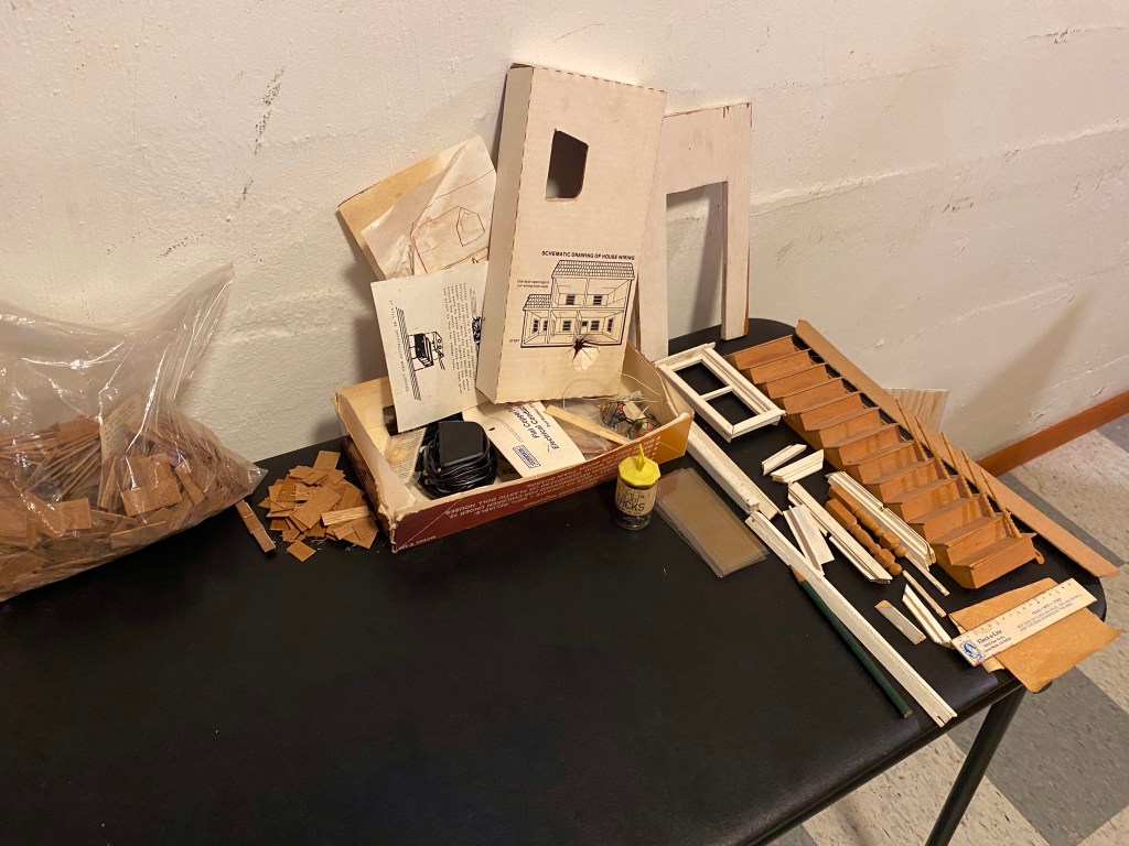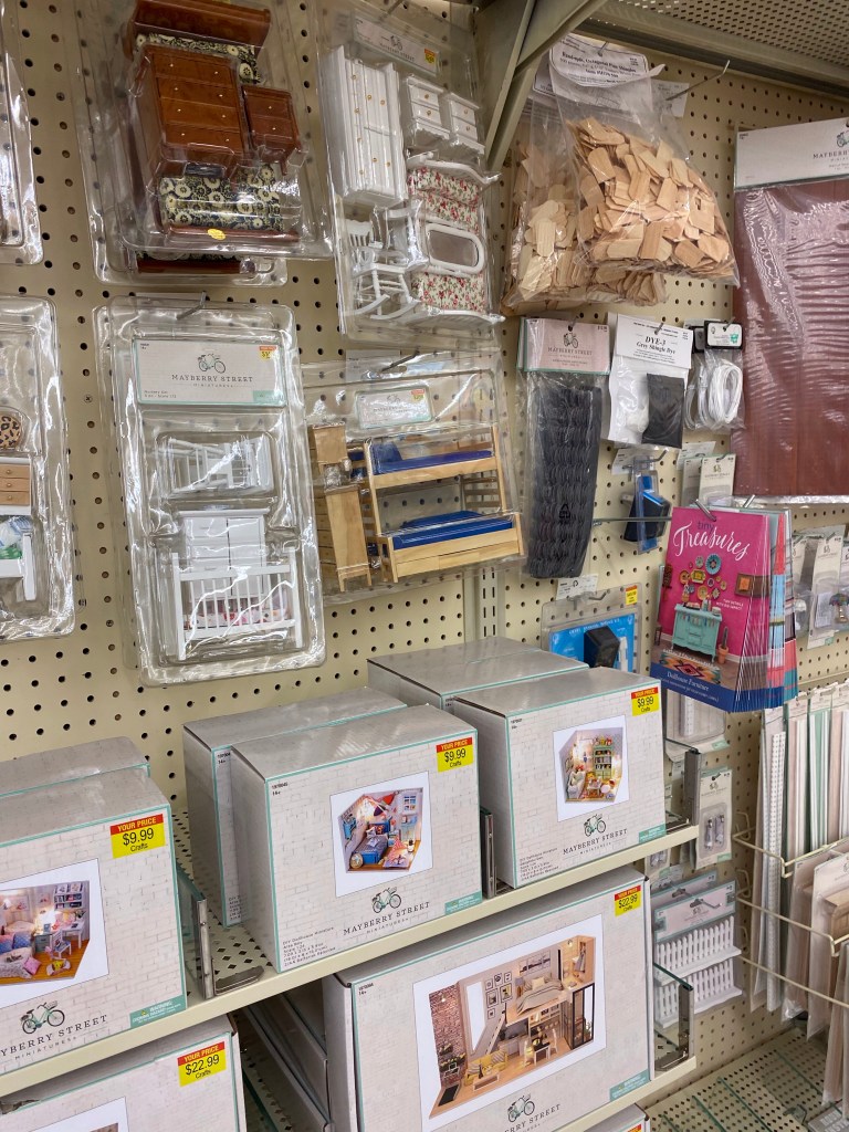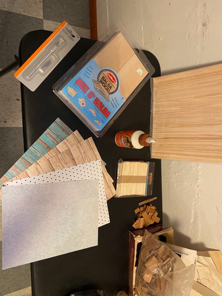 Today I started the project. Yesterday I went to Hobby Lobby and eventually found the dollhouse section. It was overwhelming. I took pics and bought some flooring, an exacto knife, wood glue, and some potential wallpaper.