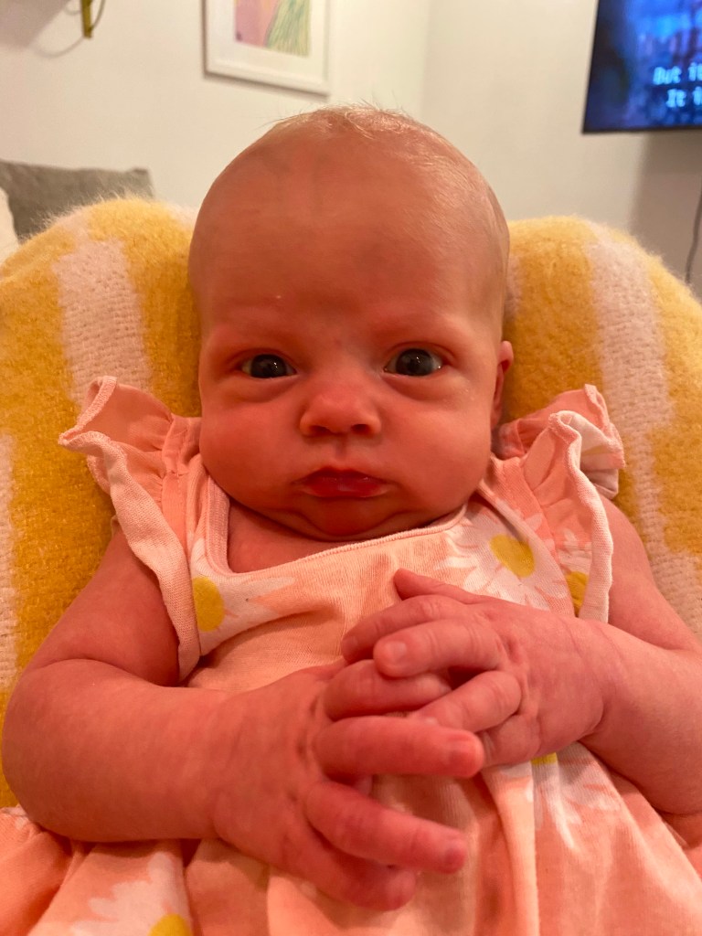 I enjoyed every moment, spoiling Hannah and baby June. June is a chill baby. She grunts and groans when she needs to burb or toot or poo then settles right down. She is very very snuggly. I couldn’t believe how much attention she pays to books when you read to her. There were moments every day that she woke up and gazed up at me curiously. She liked to look around the room, also. She’s still so tiny, in newborn clothes and diapers, her 0-3 months are still just a title too big.