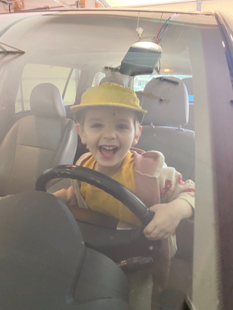 Here is the only picture I took: Henry pretending to drive taken through the windshield.