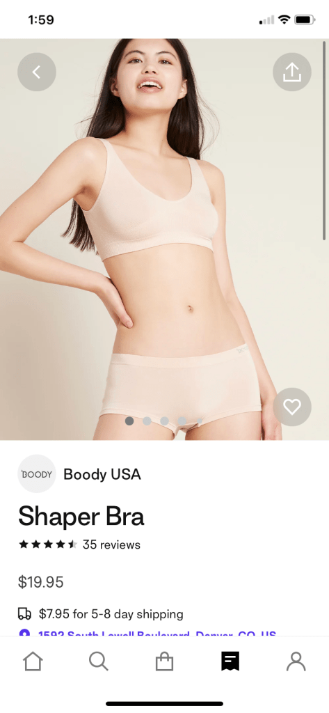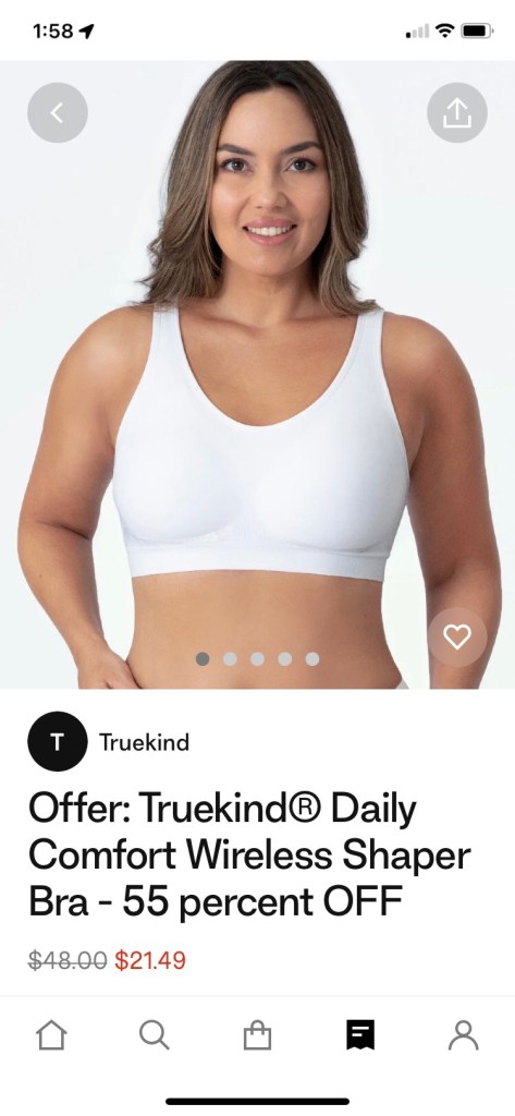 I tried, Truekind, eby, nuudii, boody, and underoutfit . I liked the boody bra but it isn’t very supportive. The honeylove and my undies are ok but not great. I like the eby bras and matching panties but they are see through and one doesn’t fit as well as the other even though they are the same style and size so it makes me scared to order another. The nuudii looked so amazing online, a sling for your boobs that you can do fun things with. But it is only a strap in the back which does not do well with back fat. Back fat is a fact of life.