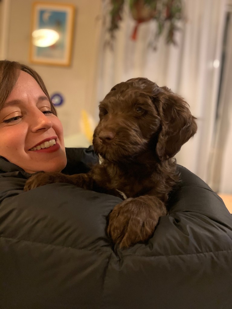 I am overwhelmed with the amount of care he needs. I had forgotten how much work puppies are. More work than newborn babies in some ways. I did newborn way easier than I am doing Wilson. Maybe its because I’m older. And Wilson doesn’t wear diapers and has very sharp teeth and claws. I have had my nose and lip ripped open and my hands are covered with scratches and bite marks despite all we are doing to teach him not to bite.