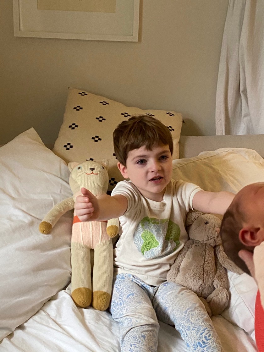 Leah FaceTimed and the boys got to meet Eleanor over video. They were both glued to the screen, fascinated. Emmet put his sweet hands on his face and said, “That’s my sister!” Henry said, “Cici!” And “that’s a baby”.