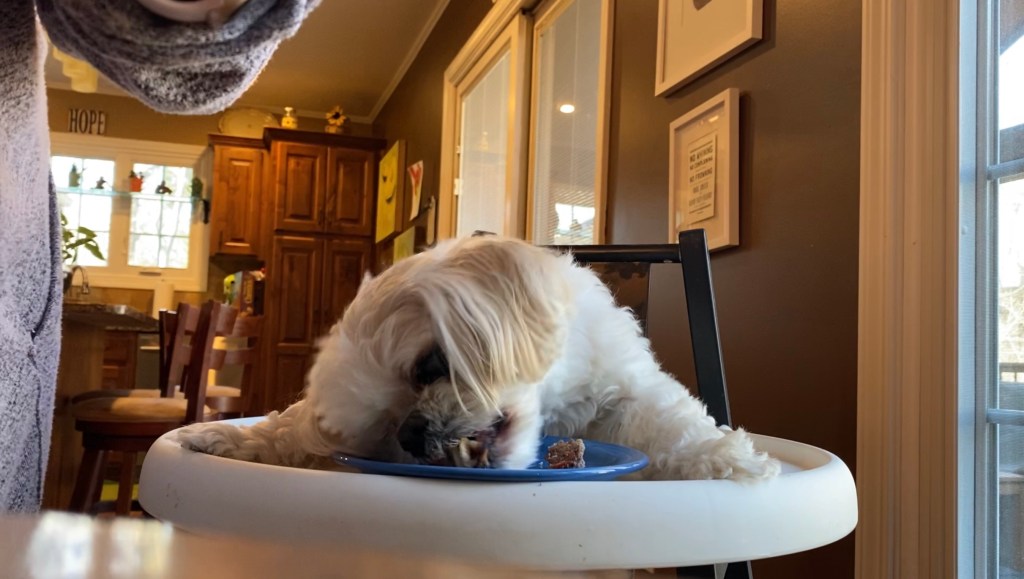 Yesterday Rex had trouble breathing again. I knew it was his heart. I quickly did his birthday party cheeseburger video and called the vet. She suggested I increase one of his meds and I did. He rested and struggled next to me on the couch. At midnight, I took him out to pee and left him out just for a minute. When I returned, he was passed out. I brought him inside and held him as he went through the process of dying. Scott was standing there helplessly patting me. Hannah was on the phone reassuring me that the process was normal. It was so hard but I was so thankful that I was there holding him and that I didn’t have to make the difficult decision.