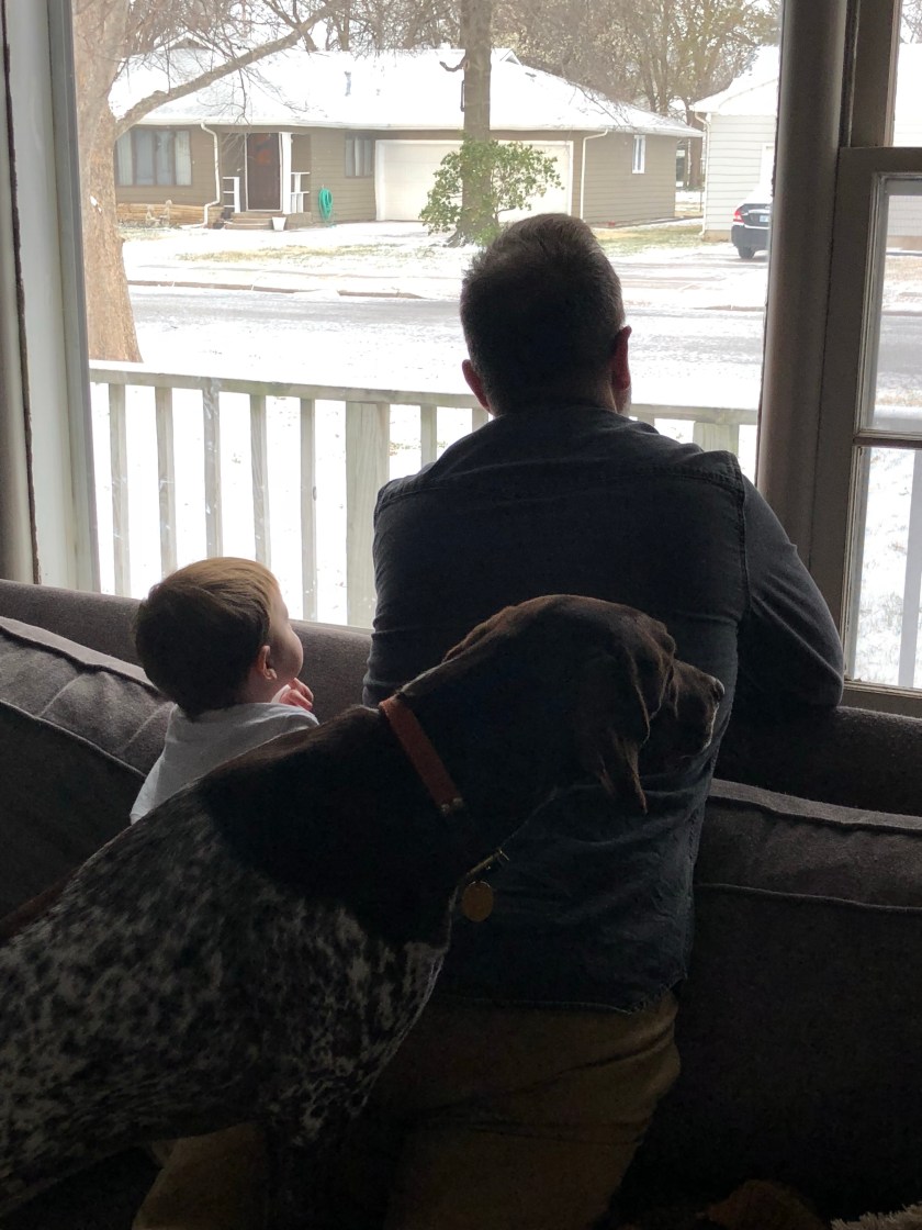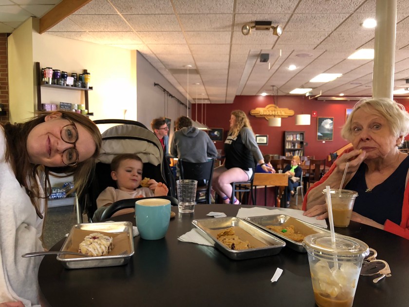 We kept waiting for word of a baby and finally got it at about 5. We drove through sonic for chicken nuggets for Emmet then stopped by Prairie Harvest for smoothies then took Emmet to meet the baby and went to pick up dinner for Leah and Dave.