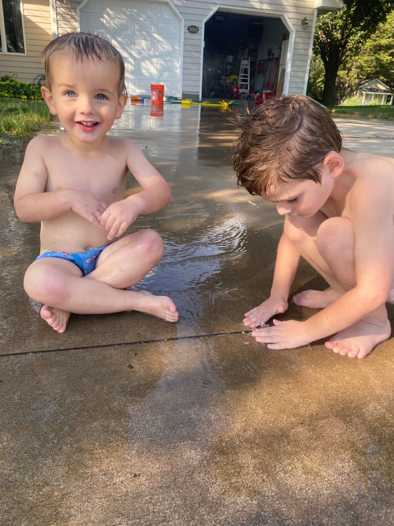 I love going to visit. Leah has created such a happy home, filled with light and joy and laughter. I brought bubbles so we headed outside to play while Leah made lunch. We ate lunch then played cars downstairs then spent the rest of the afternoon out on the driveway with a hose and a bucket. The boys stripped down to their underwear, Eleanor to her diaper and we simply played.